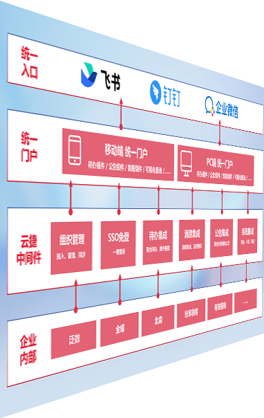对协作平台提供支持服务,,,支持企业应用与协作平台对接,,,,包含组织同步、、、消息集成、、、待办集成等。。支持目前主流的协作平台:钉钉、、、企微和飞书。。。